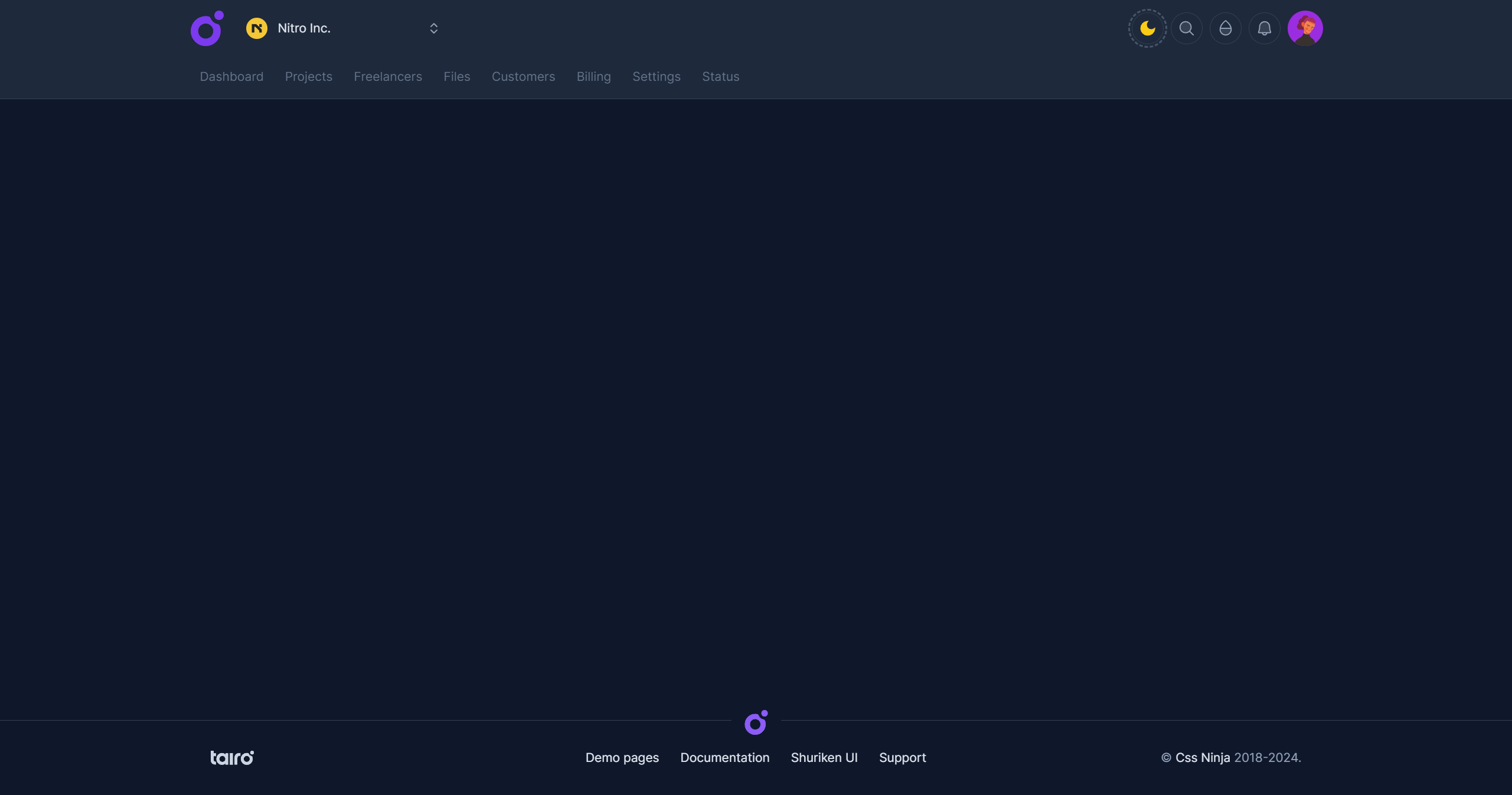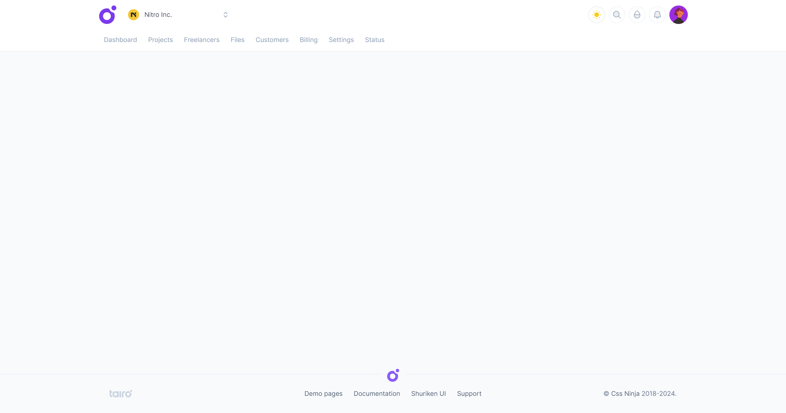 Tairo's top nav footer is a minimal footer that you can include to provide additional navigation links.